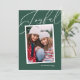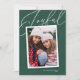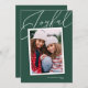 Ce carte photo de vacances moderne mais élégant dispose d'un bel arrière - plan vert foncé avec "Joyful" en script de calligraphie blanc et une photo. Cette conception s'adapte à une seule photo verticale à l'avant de la carte. Au verso se trouve le même arrière - plan vert, auquel vous pouvez ajouter une autre photo et/ou du texte supplémentaire en sélectionnant l'option "modifier à l'aide de l'outil de conception".