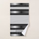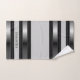 Des rayures géométriques minimalistes noir et argent contre un arrière - plan blanc. Accentuez votre salle de bain avec ce bel ensemble. Customisez le nom.