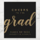Graduation simple noir et or "Cheers to the Grad" bouteille de vin étiquette dans le style moderne, chic et élégant typographie. Personnaliser avec le nom de l'année d'études supérieures et le nom de l'école.