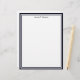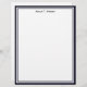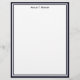 Un design simple et élégant en en-tête avec un cadre graphique bleu foncé et blanc, un arrière - plan blanc et une impression noire pour votre nom. (L'impression noire de votre nom peut facilement être customisée à une couleur de votre choix.) Ce design est offert en plusieurs couleurs de cadre différentes et aussi en papeterie.