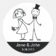 Imply Love Faire-part de mariage Étiquette. Des personnages simples en bâtons d'une mariée et d'un marié ornent cet invitation, et les couleurs noir et blanc en font un style minimaliste pour le couple moderne. Amusant et capricieux.