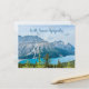 Belle carte postale de photographie de montagnes et de lac avec des vœux de paix et de sympathie, y compris une citation chrétienne sincère de Jésus au dos, comme suit ; La paix est le cadeau que je vous laisse - ma paix, non la paix fragile du monde - mais ma paix parfaite.