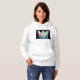 Cette conception est d'un singe dans les projecteurs. Le singe est habillé et fait dans un style de dessin animé et semble être en train de mettre sur un spectacle. L'argent est sur scène sous des projecteurs très colorés. Ce singe dans le design des projecteurs a l'air super sur ce sweat - shirt à capuche féminin. Parfait pour vous-même ou comme cadeau