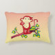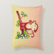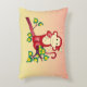 Voici un coussin d'accent adorable avec un singe rouge sucré et une longue queue de curling sur une branche d'arbre entourée de feuilles verts.