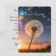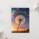 Single dandelion head with its seeds gently catching the wind and drifting away. Wonderful, custom sympathy / condolence card! Aurora lights, blue and warm colors.