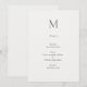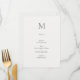 Modern wedding menu card featuring a refined single initial monogram and clean, minimalist typography. Designed for civil ceremonies, city hall weddings, and contemporary receptions, this menu card presents the meal selection with clarity and understated elegance.