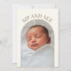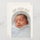 Invitation vos proches à un délicieux "Sip and See" avec une carte d'invitation charmante avec une photo douce de votre petit sur le devant, accompagnée des mots "Sip and See" dans une police élégante. Le verso de la carte fournit tous les détails essentiels de la fête, y compris le nom du bébé, la date, l'heure et l'emplacement du rassemblement. Cette invitation magnifiquement conçue capture la joie d'accueillir votre bébé et offre une touche chaleureuse et personnelle à cette célébration spéciale.