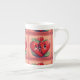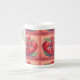 jolie porcelaine, bonne dimension effet brillant bien dans l'ensemble. Le motif et les couleurs sont réussis.Je trouve néanmoins dommage de ne pas occuper tout l'espace avc le motif car la partie rouge au dos de la tasse est trop présente et pas intéressante visuellement.