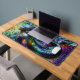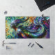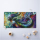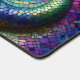 Une sirène stylisée présente une mosaïque de tuiles chatoyantes dans des teintes vibrantes de bleu, vert, violet et orange. L'éclairage renforce son éclat métallique, tandis qu'un arrière - plan abstrait complète sa forme artistique.