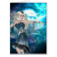 Ciel bleu éthérée - pleine lune brillant à travers les nuages - Belle déesse blonde de lune, Sirène de ciel pointant vers sa belle colombe blanche portant un seul rose