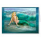 Une charmante sirène est posée sur un rivage sablonneux au milieu des vagues d'eau scintillantes. Ce design fantaisiste s'inspire de l'art de William-Adolphe Bouguereau (The Wave.)