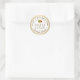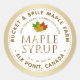 Étiquette simple et élégant de sirop d'érable blanc rond avec les mots "sirop d'érable" dans un texte en or métallique. Nom et emplacement de l'entreprise dans le texte en relief. Bordure de ligne pointillée en or. Champ de formulaire modifiable pour le grade du sirop d'érable et le poids net. Trois feuilles d'érable à sucre colorés. Bordure dorée délicate sur étiquette circulaire. Arrière - plan d'angle en métal or arrondi sur étiquette carré.