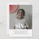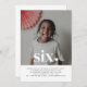 Une simple invitation pour le sixième anniversaire avec votre propre photo et les mots "six" en haut, avec un petit coeur en forme. Vous pouvez modifier la couleur du texte et du coeur dans ce design, pour convenir à votre photo.