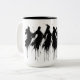 A vessel for liminal mornings. Four elongated shadow‑forms drift down the ceramic surface, rendered in dense black ink with the signature BurnsInHell drip‑fall that feels half‑spirit, half‑smoke. Each figure hangs between apparition and silhouette, giving the mug a ritual presence—quiet, watchful, and unsettling in the best way. Perfect for those who drink with ghosts, sketchbooks, or stormlight. Museum‑grade inkwork reproduced cleanly on a white mug with black interior for maximum contrast and mythic weight.