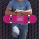 Skateboard 3 Initiales Monogramme | Blanc sur rose chaud