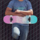 Skateboard à dégradé bleu et rose