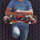 Ce jeu de skateboard affiche un style abstrait géométrique saisissant avec des formes audacieuses et des couleurs vives comme le rouge, le jaune et le turquoise. Idéal pour les amateurs de haute énergie et de design artistique, ce pont unisexe apporte une ambiance artistique moderne et pointue à chaque tour.