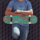 Skateboard Aqua, Orange et Vert Super Art rétro Abstrait