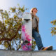Une magnifique aquarelle en fleurs de cerisier en rose, violet et crème.