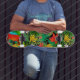 Ara avec fleurs multicolores et feuilles de palmier sur fond noir. Idéal pour les amoureux de la nature.