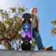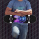 Skate d'astronaute Alien rétro. Illustration de la rencontre d'un astronaute alien géant avec un petit humain. Pour les amateurs de science-fiction rétro.