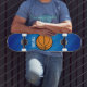 Cool, joueur de basket-ball coloré, entraîneur, design de sports orange et noir sur bleu, rayures bleues royales, motif rayé. Un cadeau parfait pour bébé, tout-petits, enfants, enfants, ados ou adultes ! Personnalisez le design en ajoutant le nom d'un enfant ou le texte personnalisé avec une police blanche sportive et sportive. Visitez notre magasin, Birthday Party House, pour plus de produits pour garçons et filles personnalisables!
