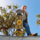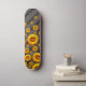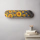 Skateboard Belles fleurs jaunes sur gris, rayures noires