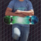 Skateboard Bleu vert clair à l'extrémité du tunnel
