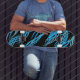 Ce skateboard de qualité est présenté dans une couleur solide de noir avec un design d'impression d'ondes bleues. Acheter tel quel ou customiser cet objet à votre goût.