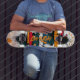 Ce jeu de skateboard combine des coups de pinceau dynamiques avec des motifs géométriques dynamiques et la devise "Live to Ride". Parfait pour les amateurs d'art moderne, ce design mêle textures expressives à une ambiance urbaine et artistique, faisant une déclaration audacieuse à chaque tour.