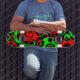 Un design abstrait passionnant et amusant composé de formes circulaires comme des bulles dans le rouge et le vert vibrants contrastant avec le noir. Fabriqué à partir d'un vecteur original et de sortie à 300 ppp pour assurer la meilleure qualité d'impression.