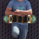Un skateboard cool amusant pour les amateurs de skateboards personnalisés cool et de la culture californienne ! Avec des textes et des logos californiens personnalisés, des arrière - plans inspirés du grain de bois, des rayures inspirées de l'incrustation de bois, et trois ours californiens! Entièrement personnalisable pour ajouter des noms, des images et plus si désiré. Bon appétit !