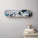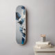 La moitié d'une girafe bleue et grise imprimée sur un skateboard.