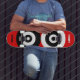 Skateboard Cercles abstraits noir & blanc sur fond rouge