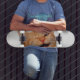 Skateboard Chat tabby mignon pleurant d'un oeil