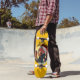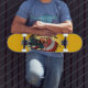 Skateboard Chef amérindien sur paysage sauvage coucher de sol
