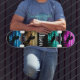 Skateboard Cheval noir violet, Bleu, Turquoise, Ciel doré & E