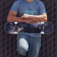 Un skateboard minimaliste d'un ciel cosmique violet profond.