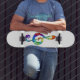 Polygone, arc-en-ciel, clé musicale brillante sur arrière - plan blanc. tatouage en polygone. Clé de fer