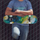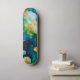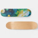 Skateboard Cosmos d'encre d'alcool bleu vert or