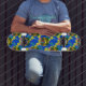 Le motif hawaïen du coucher du soleil tropical et coloré d'océan derrière des planches de surf, palmiers, un perroquet d'ara était perché sur les panneaux de surf, et la ketmie fleurit au fond