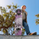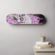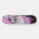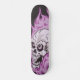 Le crâne drôle entouré par les flammes pourpres est un crâne coloré qui semble grand sur des planches à roulettes.