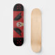 Ce magnifique skateboard présente une image graphique d'un crâne aux yeux rouges et aux dents jaunes recouvertes de fissures. Le crâne déplaisant a un grand corbeau debout de chaque côté comme un gardien. Les corbeaux sont noirs avec des pattes grises et des griffes. Ils ont aussi des yeux noirs beady.