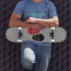 Skateboard Crânes - Gris fantôme et Blanc osseux