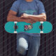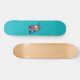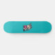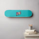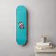Un skateboard turquoise dominant avec une jolie illustration d'une licorne tenant un coeur mauve et des cheveux colorés. Un design génial pour les coureurs femmes.