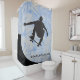Skateboard Design Douche rideau, avec une silhouette de skateboarder sur fond de graffiti. La couleur d'accentuation peut être customisée à la couleur de choix. Idéal pour les passionnés de skate sur votre liste d'achat!