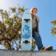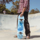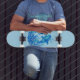 design décoratif d'une orque bleue ou d'un orque tueur sautant de l'eau sur un skateboard
