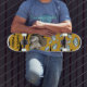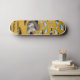 Montez sur les diamants pour la planche à roulettes d'hiver. Un arrière - plan noir et jaune de peinture de jet. Avec des diamants pleuvant vers le bas sur notre écureuil inventif.