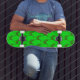 Un troupeau colossal de dinosaures verts se promène sur ce skateboard.