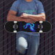Un Skateboard En Bois Funky Cool D'Un Dragon Bleu Sur Noir